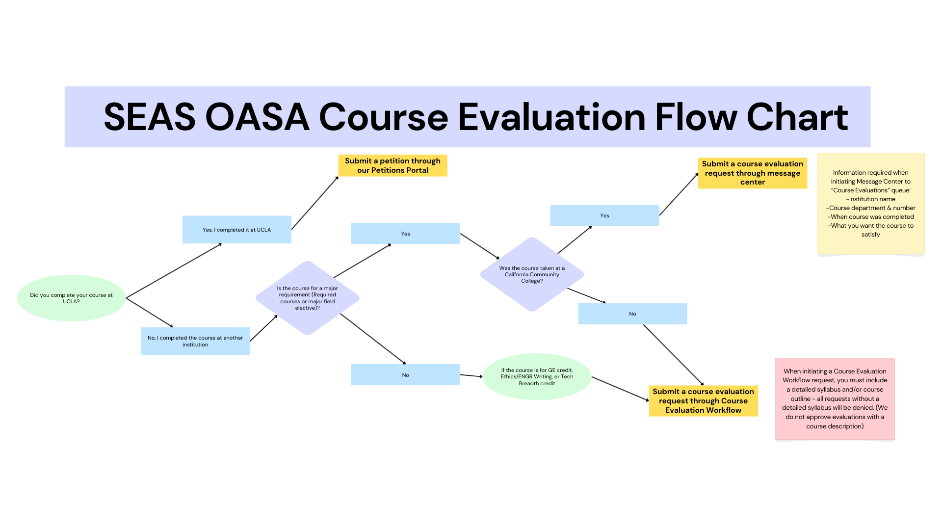 Effective Fall 2025, we are no longer accepting syllabi requests for engineering courses taken at California Community Colleges (CCC’s). For courses taken at a CCC, please login into MyUCLA and send a Message Center to the “Course Evaluation” queue and include the following information: